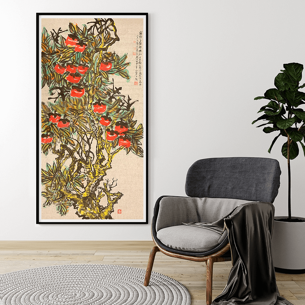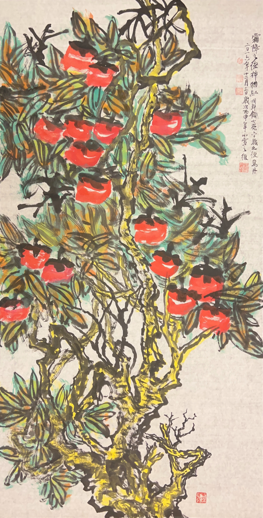 《霜降之后柿子红》国画【顾大亮】G202401027