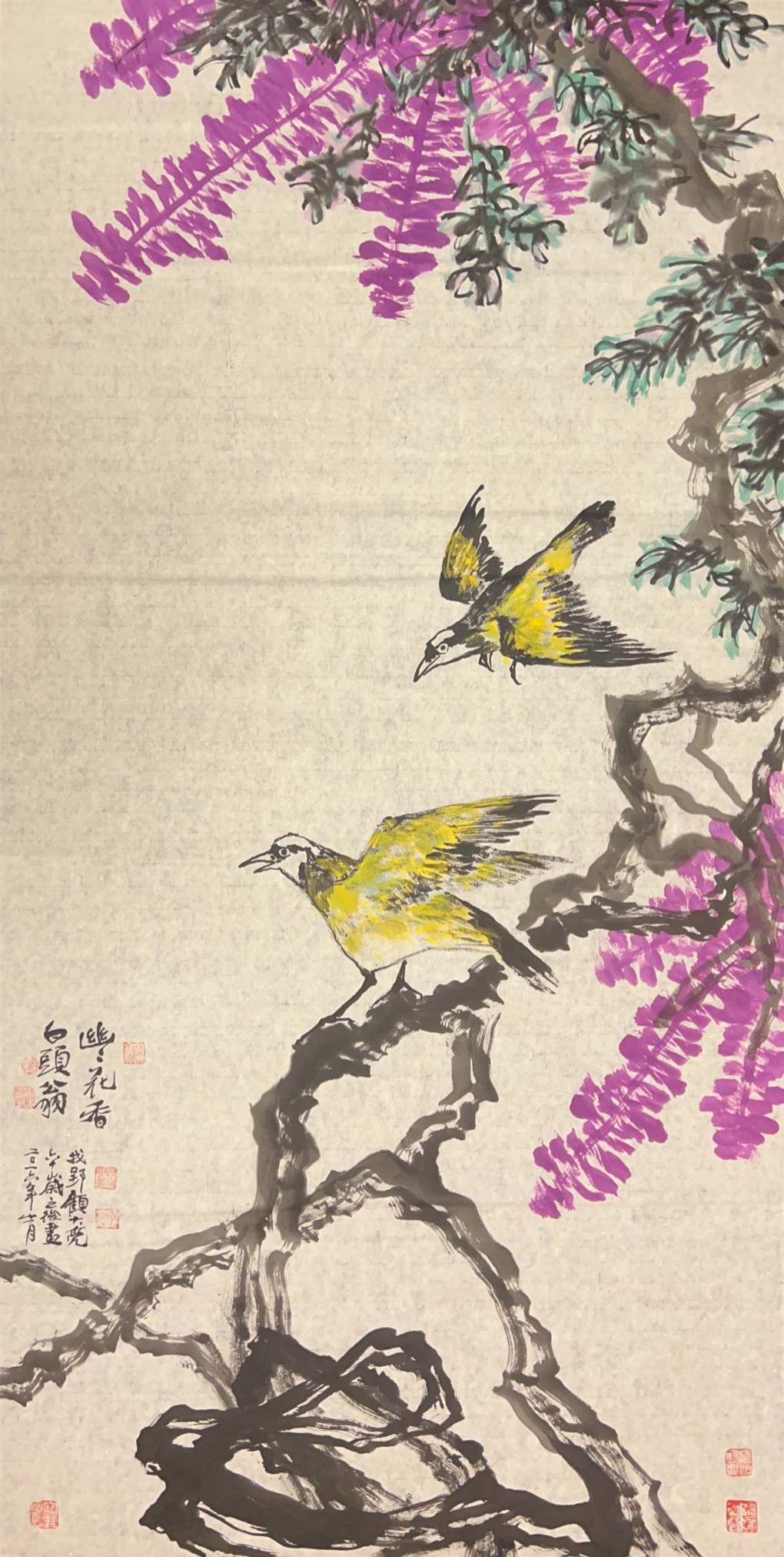 顾亮先生的中国画个性鲜明,以六大特点立于中国画坛:一是创意大胆清新,意境险峻古拙。二是线条自然老辣,逆笔取势,遒劲灵动,技法熟而后生。三是墨彩浑融,亮丽鲜活。四是融合农民画和版画特点,充满童心,意趣天成。五是创造履带皴法、鼓点皴法和青花中国画,具有律动韵味,让人眼前一亮。六是内涵丰富,人文性强,题跋时出新奇,引人入胜。总之,顾亮先生的画意境美、墨彩美、线条美、技法美、造型美、情趣美、风格美和内涵美。靓丽清新,魅力四射,非常养眼,让人百看不厌。
