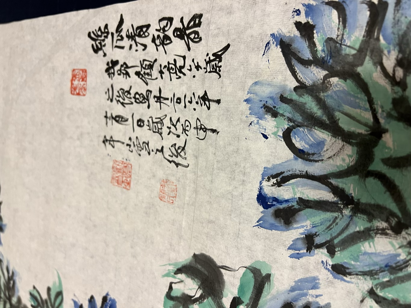 顾亮先生在艺术上厚积簿发,先师从吴东樑教授学习水彩画,再师从张自申教授学习油画,又师从光元鲲、申茂之二位教授学习花鸟、书法和篆刻,还师从王石岑、黄叶村二位教授学习山水画。他日夜苦学,又经过几十年的修养磨练,终于创造出履带皴法、鼓点皴法和青花中国画,形成了独特的艺术风格。